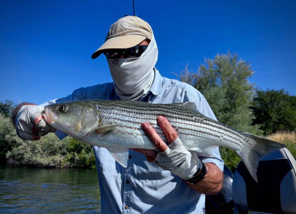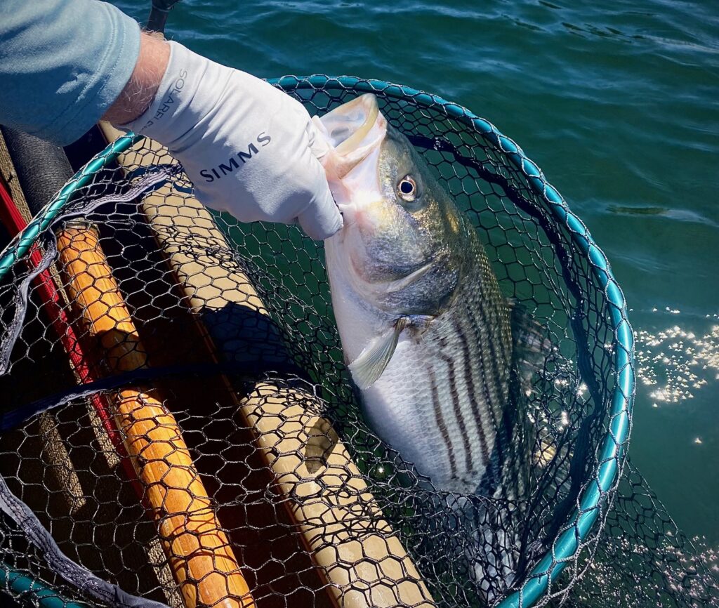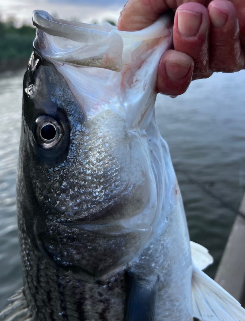 There are stripers in the system but the numbers are way down this summer. None the less there are schooly size as well as some big hens swimming about.