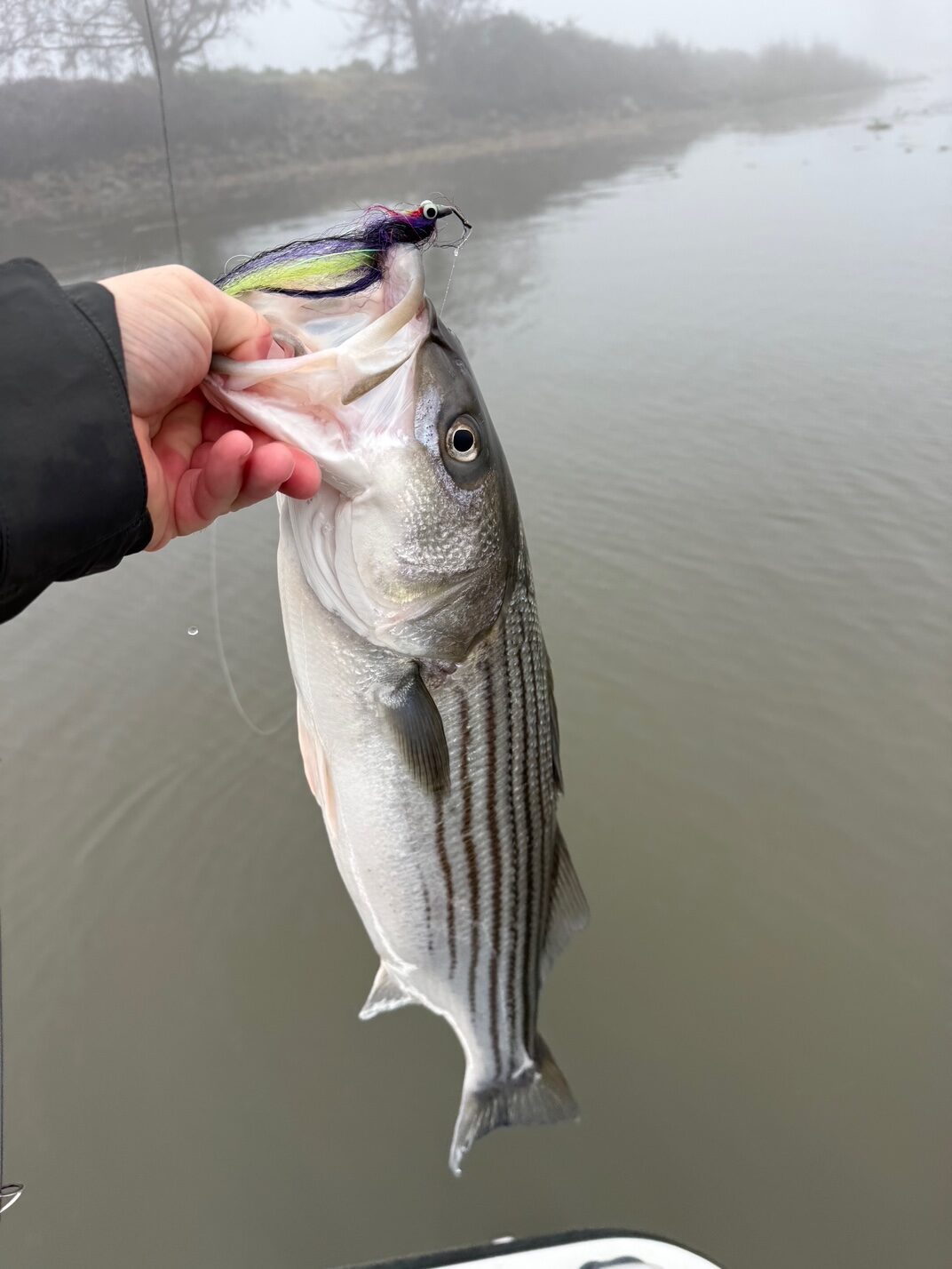 Happy Winter 2026! Just took a much needed month off for the Holidays & to get my 2026 season in order. Just couldn’t stay off the water any longer so I snuck out for a personal day Tuesday Feb 3. Was greeted with cool foggy weather but found 2-3’ of visibility & 43-44 degree water temperatures. There was a ton of debris in the water due to recent tides, add dense fog & it was slow going most of the day. Fished about 6-7 spots over 4hrs & managed 15 fish up to 15lbs. Also, a good number of those fish were in the 3-5lb range & a few went 6-8lbs. May have picked the right day & the right tide but I was pleasantly surprised by the quality of the fishing & had the Delta to myself. The day was likely one of my better Feb. days in recent years & it was great to start 2026 off with a bang! In an effort to keep it fun I fished exclusively in shallow water(2-6’) with type 3 lines & a Steve Adachi style rattle Clouser(Black/Chartreuse with purple cheeks-Joker). Winter fishing can be a very spotty time so was fortunate to catch the fish I did, that said, they are out there & on the right day you can get after it if you are feeling frisky!
