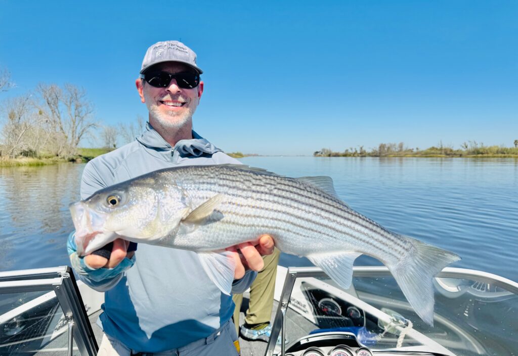 Spring Striper season is heating up, been seeing great numbers of solid Stripers in the system! The next few months should be good when the weather cooperates. Water temperatures are climbing up to 60 degrees & should go higher in the coming weeks. I have been catching around 20-30 fish a trip with, most in the 3-5lb class & a few up to 10lbs. As water temperatures increase from 60 to 65 degrees & water clarity improves, Delta Stripers will continue to ramp up towards the Spring spawn. Clarity is currently 1-3’ & hopefully improves over the coming weeks. Fly wise, “Steve Adachi style” rattle Clousers are a way to a Stripers mouth so don’t leave home without them! April & May are prime Striper months & I am excited at the potential for the strong season ahead! My Spring is booked but Fall is always an option as well. Also, for June 15-September 15 I turn my focus to Topwater Largemouth & Smallmouth bass trips. These 5hr long 1/2 day bass trips are a great way to get newer anglers into the sport of Fly Fishing! Also, these trips are a blast for seasoned veterans who just want to have fun & watch Largemouth & Smallmouth explode on your fly! After Summer Bass season I finish out the year with Fall Striper Trips September 15-Christmas. Looking forward to a great season ahead, hope to see you out there!