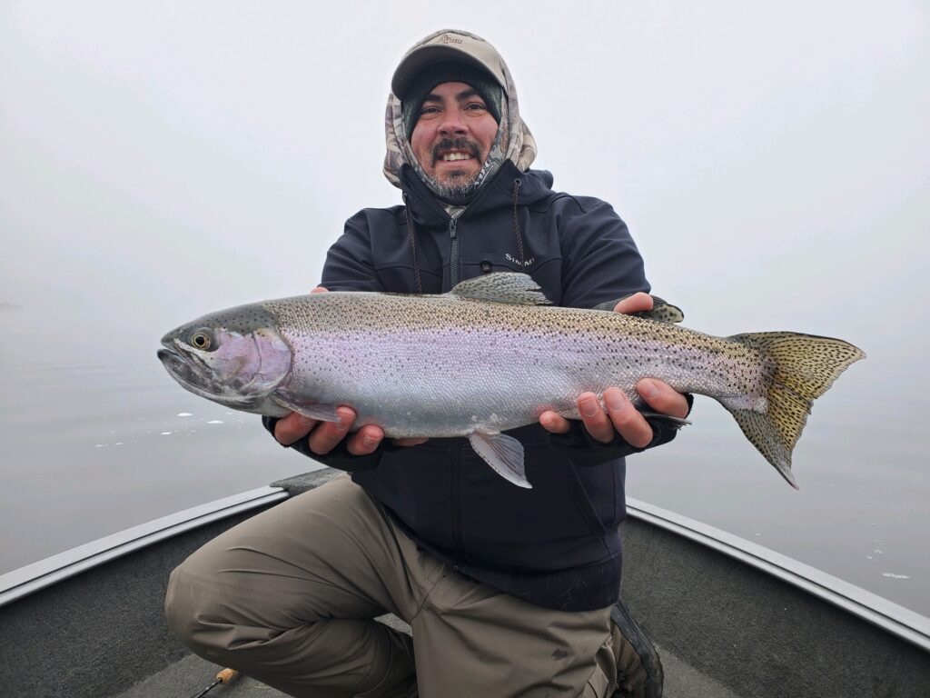 Eagle Lake is on my radar for Fall! October and November are probably the best time of the year to fish here. Despite the cold Eagle Lake can be very rewarding, with its own unique strain of rainbow trout. Starting in mid October, big rainbow trout will start to feed heavily on Tui Chub, Scud, and Leeches as they bulk up for a chilly winter. Balanced leech under an indicator from the boat or float tube is an excellent way to fish Eagle. We also have the opportunity to fish intermediate techniques with wiggle tails and scud patterns. If fishing from shore or wading, we use a spey/switch rod for long casts with indicators or intermediate. Keep in mind as the weather shifts, days can be very cold, with icy guides, so remember to layer your clothing accordingly and bring hand and feet warmers.