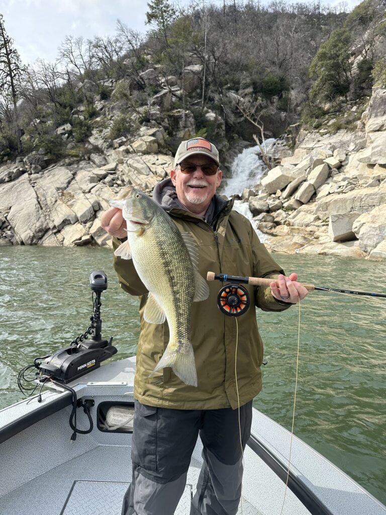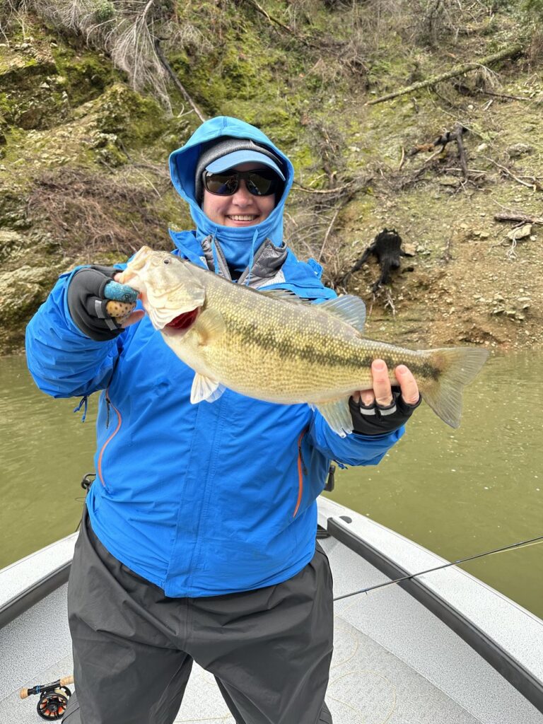 Lake Oroville is fishing well for winter spotted bass. We are not seeing huge numbers of fish but good size – fewer fish but most are pretty big. Best fishing has been up the Middle Fork as the clarity is best up the middle fork. The North Fork is fishing well as well but water has color and finding “cleaner” water is the challenge. Fish are holding on points and rock walls, not having move into the moving water coves and such yet. Best fishing has been using the Float and Fly Rig with a 9-10’ drop from the indicator. Best flies have been wakasagi minnow patterns, Chuck Ragan’s Drop Dead Minnow in Olive and Black we have found to be the best.