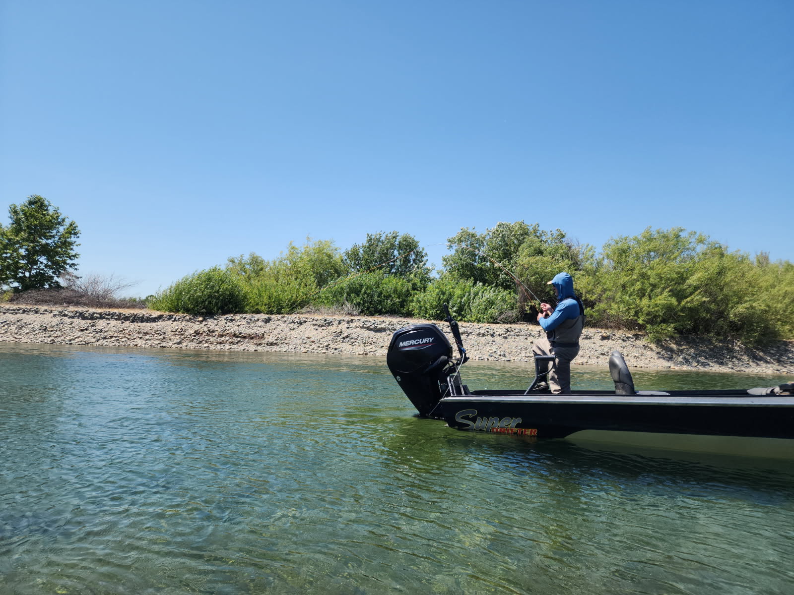 As mentioned, we are no longer targeting shad this season, as it was a very short one. While shad are typically on a three-year cycle of good years followed by a slower one, this year was definitely slower. We’ve now turned our efforts to swinging for trout and, yes, even stripers on bigger spey rods! Several clients requested this, and I’m excited to now offer this technique. We’re also targeting stripers on the fly with single handed rods, sinking lines and clousers in gin clear water, oh boy what a sight. Fishing started strong as the shad slowed down, then we had a small push of fresh shad, which was great for shad fishing for about two weeks but not ideal for the bigger stripers. Now that the shad are finally moving out, striper fishing has picked back up. So, whether you’re into throwing hoppers for trout, swinging for trout, stripping for stripers, or swinging spey rods for stripers – get ready for some exciting action!