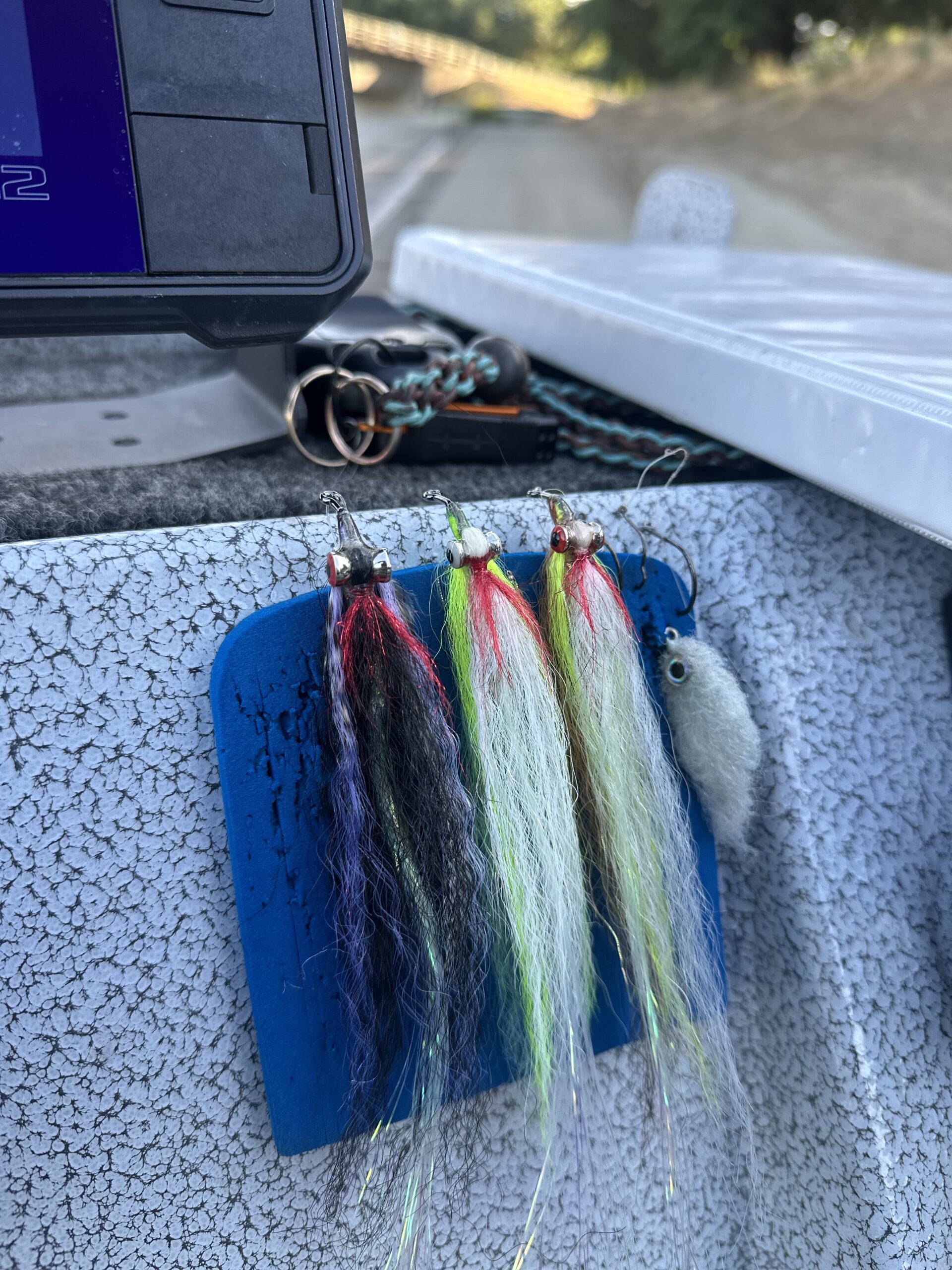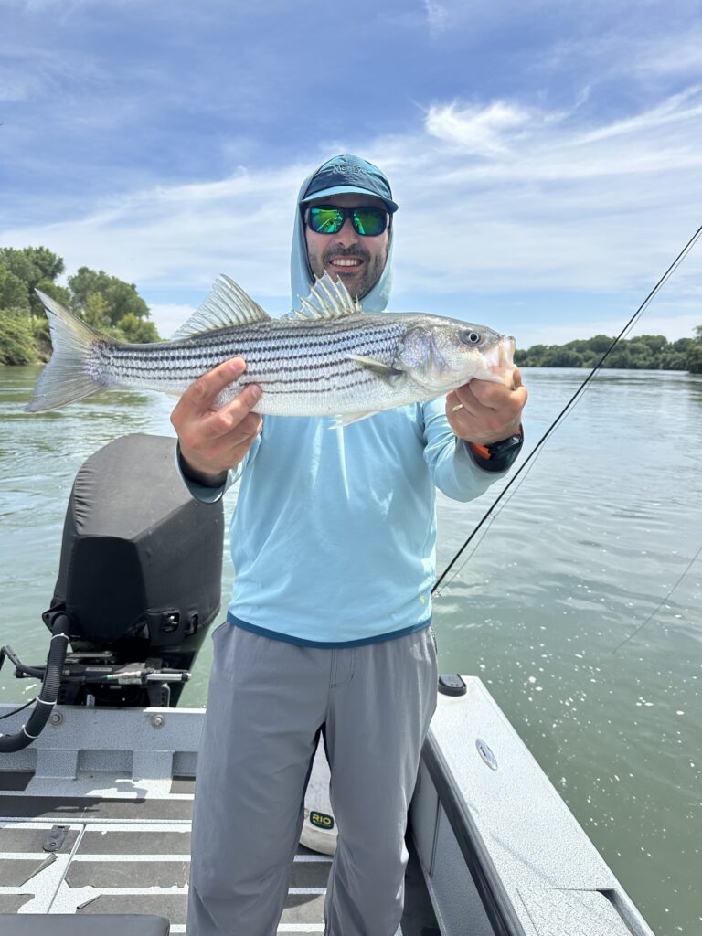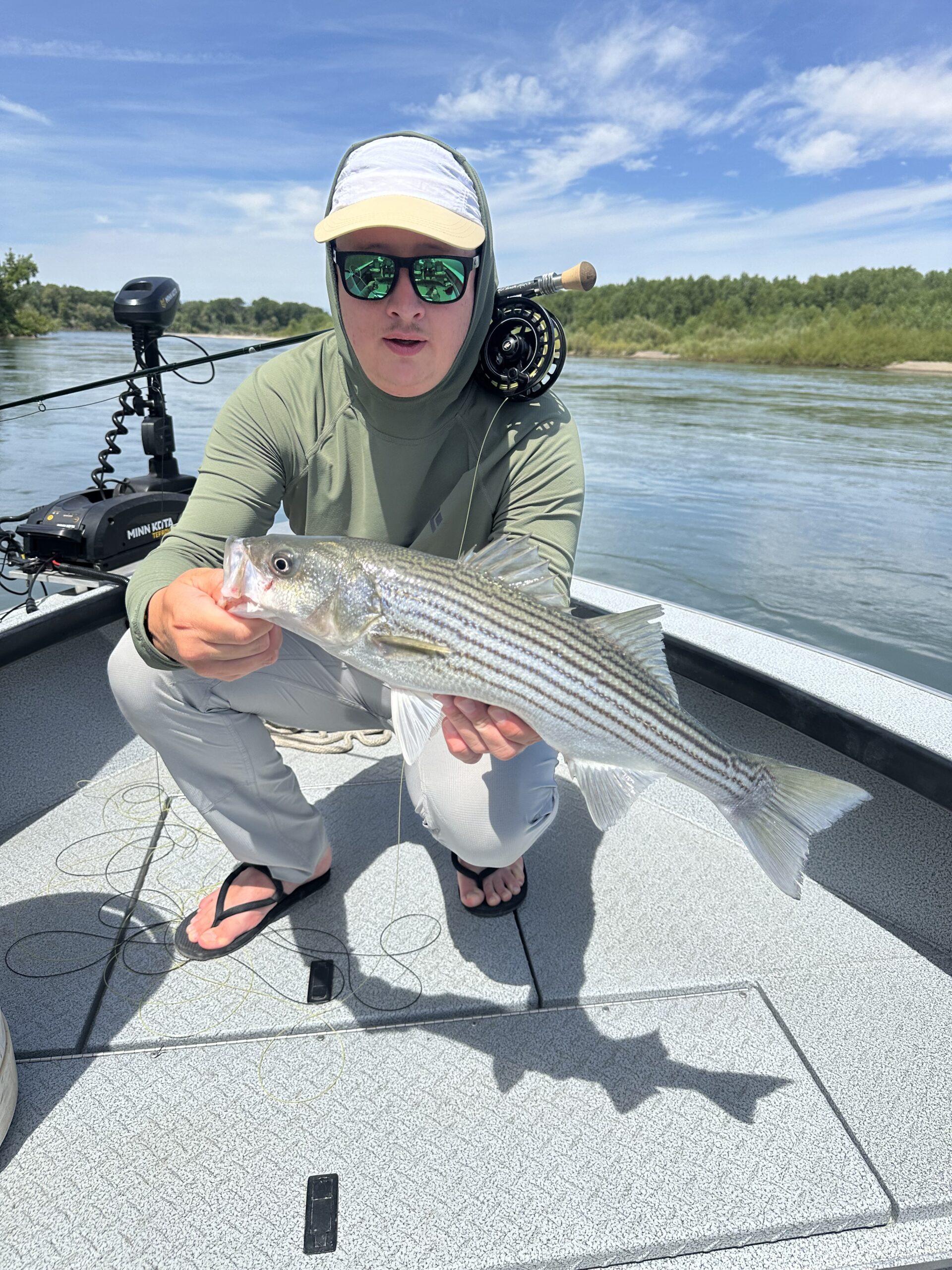 It is prime summer resident striper season on our valley rivers and the Lower Sac from North of Red Bluff to Colusa is fishing well. Certain areas fish better than others and tribs can create varying degrees of clarity as they blow out due to high mountain thunderstorms that muddy up the rivers from fire burn areas in certain stretches. Heavy sinking lines and big rattle clousers are the ticket this time of year as sections of the river have varying degrees of “color” – Color is good though as fish make more mistakes in off color water.