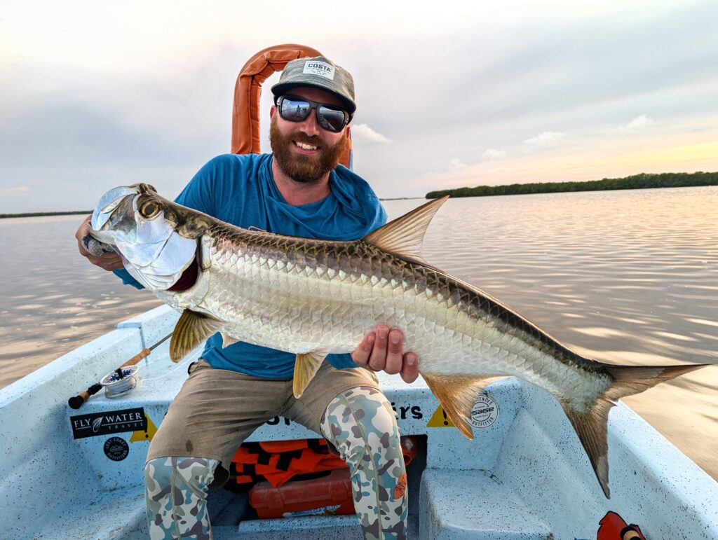 Although this adventure was a first saltwater flats trip for several anglers, we repeatedly found juvenile tarpon rolling in the shallows and coaxed them into the air using fur and feathers (and a little bit of luck). Every tarpon we hooked performed a new and captivating aerial display with gills flashing, sun glinting off large scales, and explosions of water. Even these baby tarpon are capable of pulling line taut with indescribable power for their size.